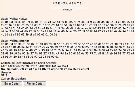 14. Se descarga la carta, se firma con el certificado nuevo y la clave nueva.
