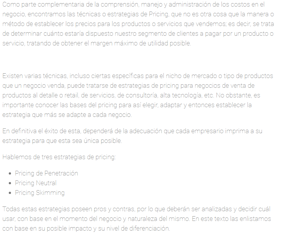 CONOCE TUS COSTOS, DETERMINA TUS PRECIOS Y EJECUTA ESTRATEGIAS COMERCIALES