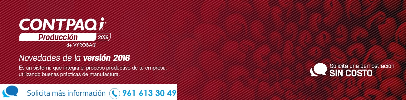 Opciones de configuración en códigos de producto. Opciones de configuración en movimientos de almacén: Registro de consumos: En automático de acuerdo a la estructura del producto, De manera manual dependiendo del avance en la producción. Validación de consumos establecidos por la estructura de producto: Permite surtir solo insumos asignados en la estructura, Permite surtir solo insumos asignados en la estructura y productos sustitutos, Permite surtir cualquier insumo a la orden de producción. Opciones de configuración en las ordenes de producción: Generar las órdenes de producción desde un pedido de CONTPAQi® Comercial, Generar las órdenes de producción con o sin la generación de un pedido en CONTPAQi® Comercial. Opciones de configuración en la planeación: Se requiere la planeación de las órdenes de producción para el seguimiento de la fabricación del producto, No se requiere la planeación de tiempos y movimientos.
